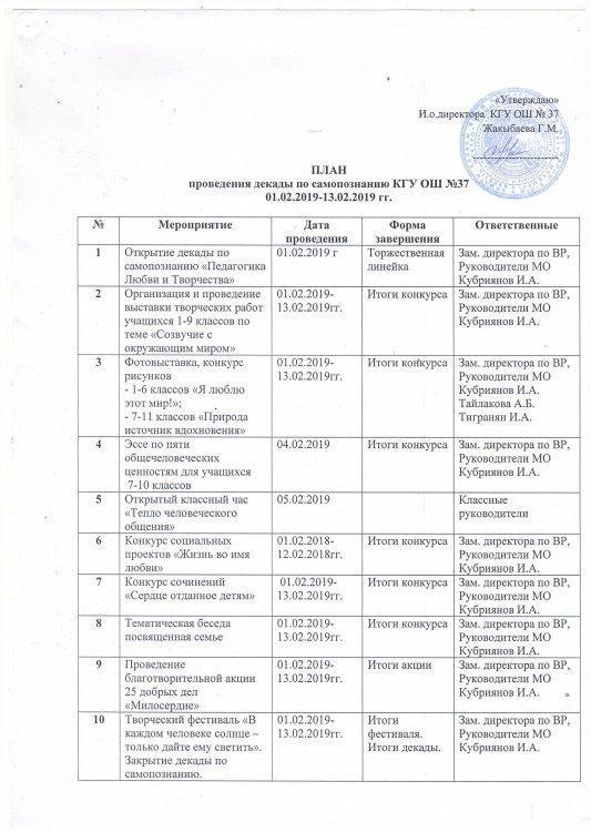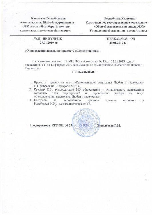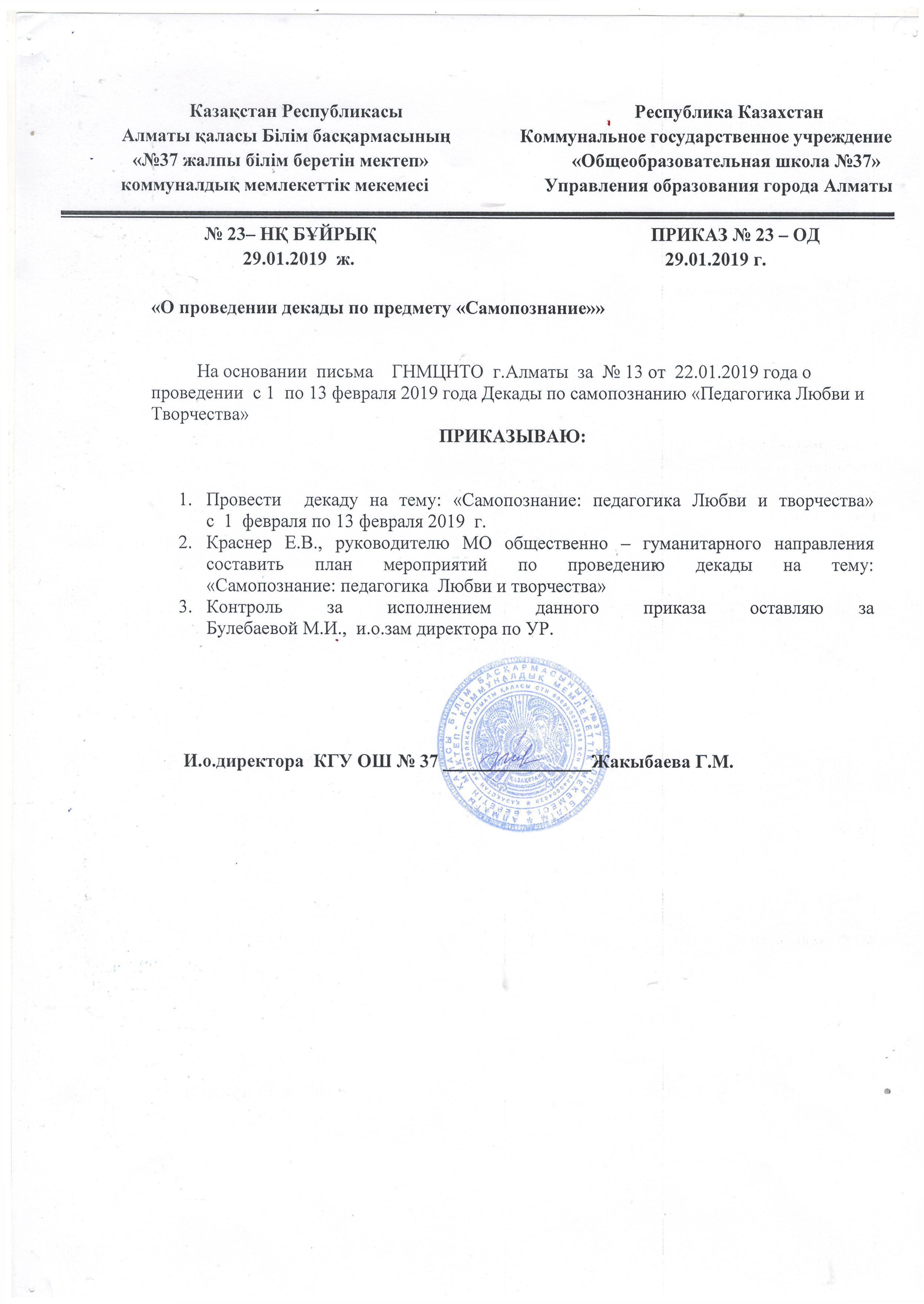 КГУ «Общеобразовательная школа №37 » Управления образования г.Алматы