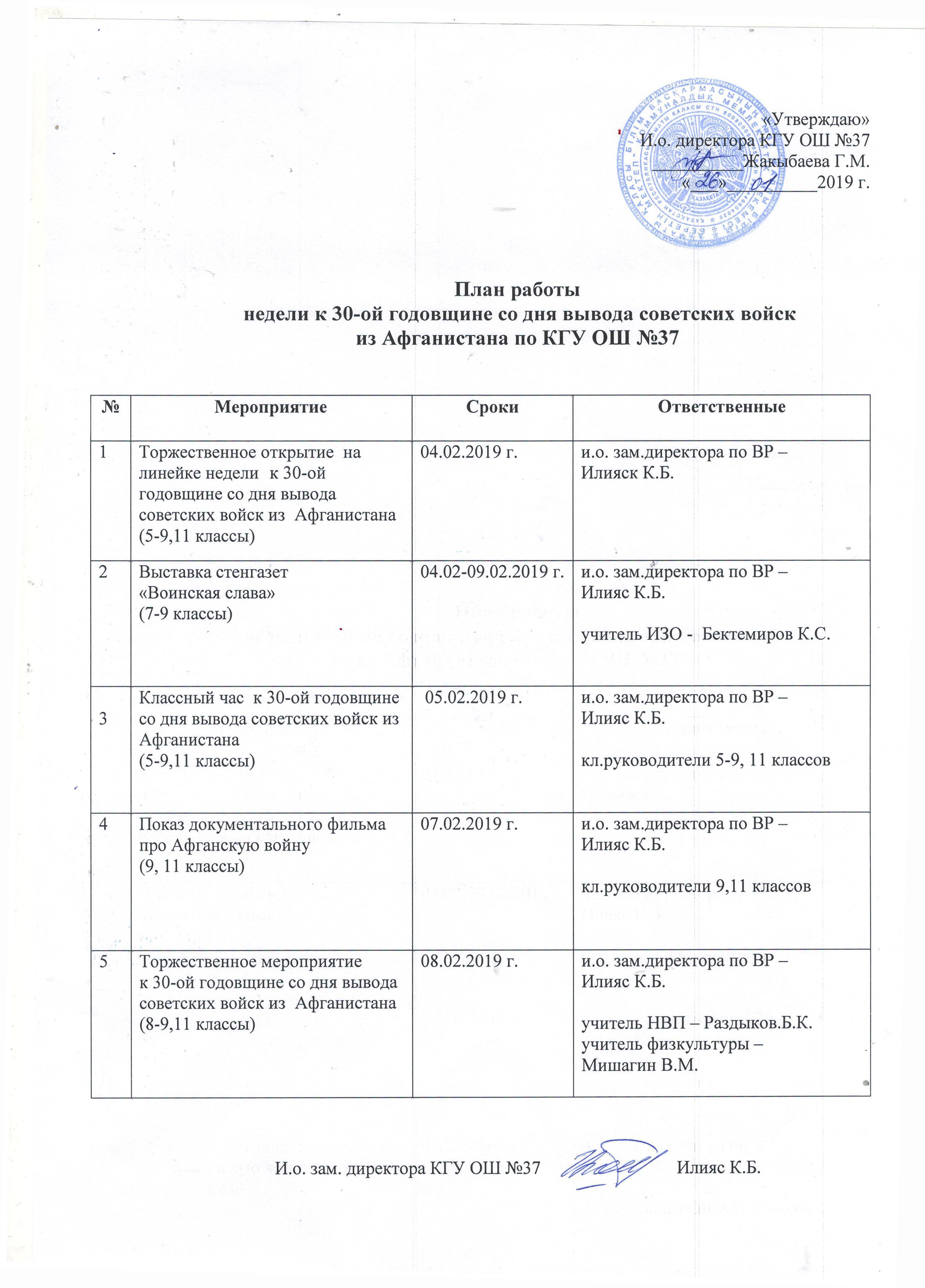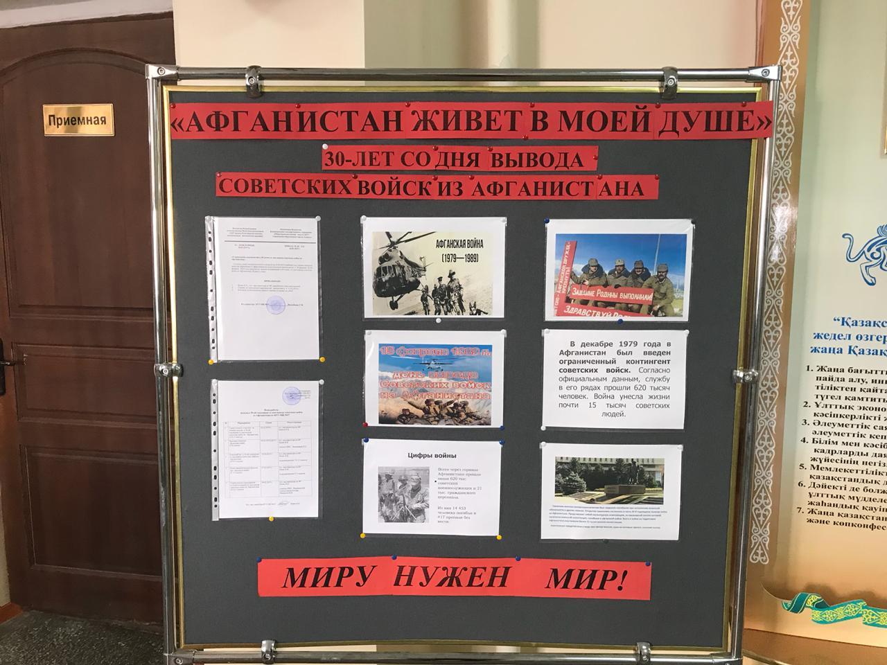 Согласно плану внутришкольного контроля на 2018-2019 учебный год с 04 февраля по 09 февраля 2019 года проводится неделя посвященной к 30-летию со дня вывода советских войск из Афганистана.