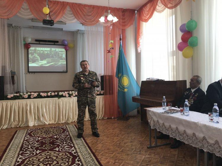 Учитель физической культуры КГУ ОШ №37 Мишагин Виктор Михайлович выступил перед учениками и ветеранами, презентовал второй том своей книги «На земле рая нет», посвященной войнам Афганской войны.