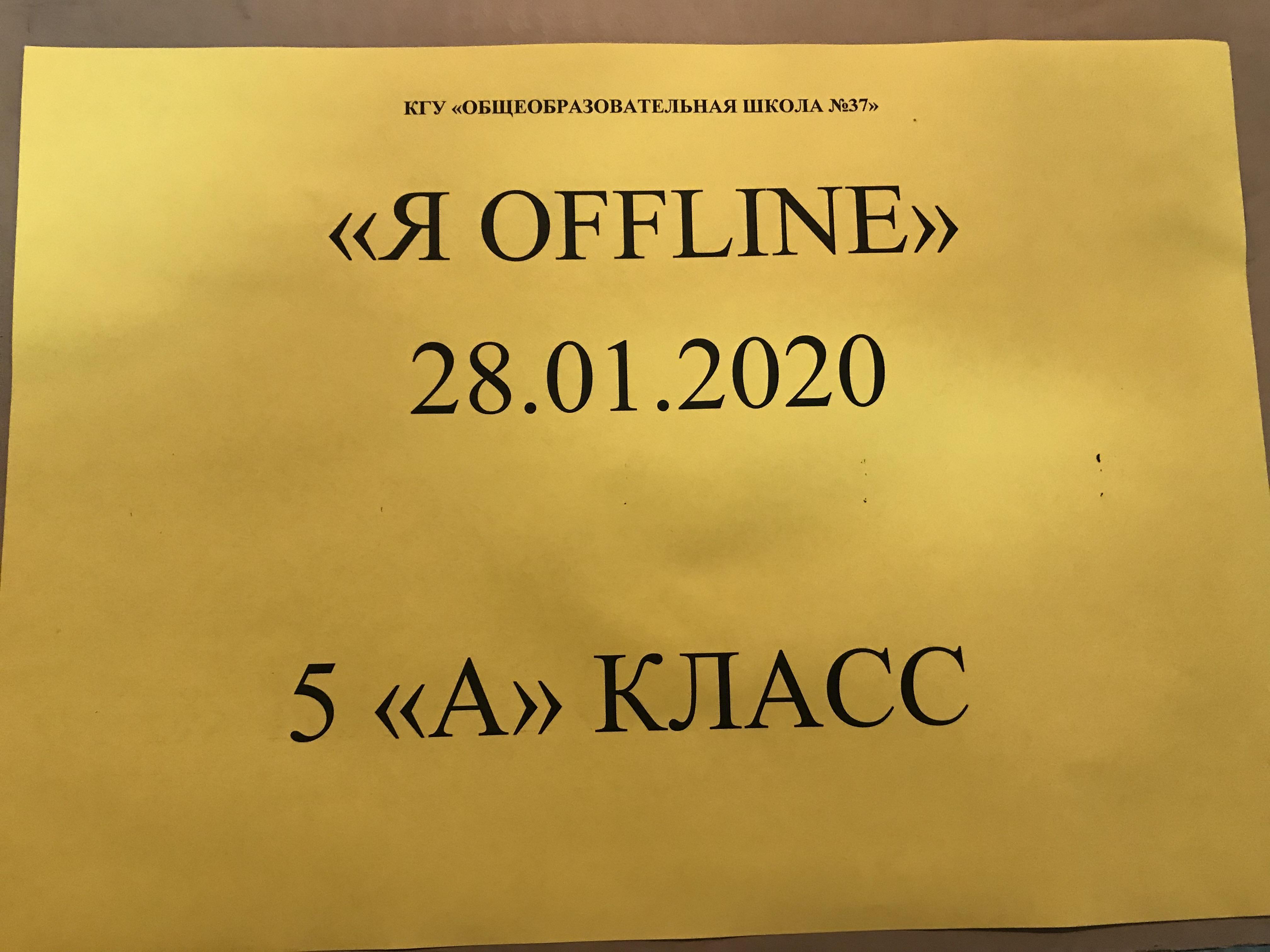 На основании письма Управления образования города Алматы №05-3-4/25 от 13.01.2020 года в целях улучшения качества образования и профилактики интернет зависимости учащихся в рамках акции «Я оффлайн» в КГУ ОШ №37 были проведены: