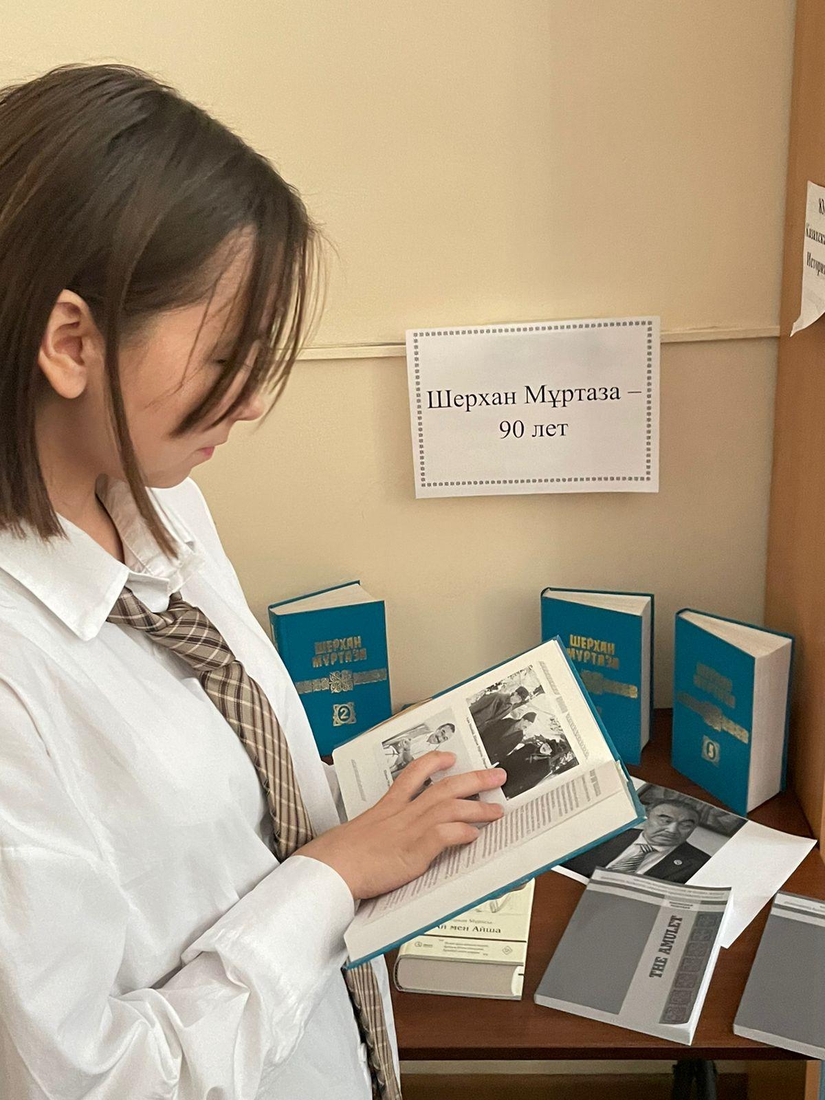 №37 мектеп кітапханасының оқу залында жазушы Шерхан Мұртаздың 90 жылдығына арналған кітап көрмесі өтті.