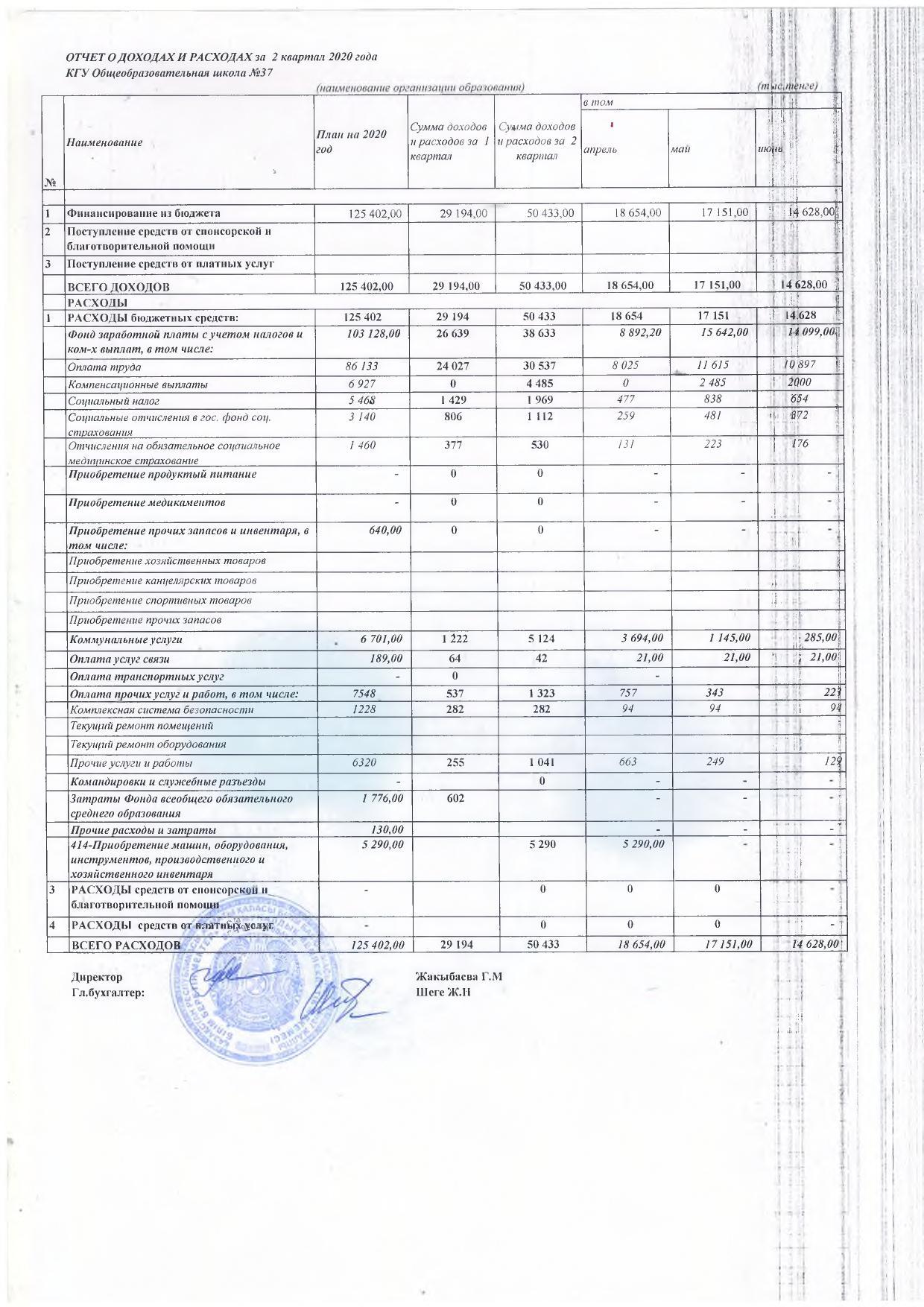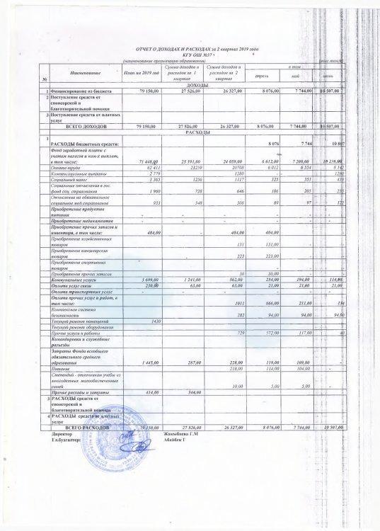 Отчет о доходах и расходах за 2 квартал 2019 года