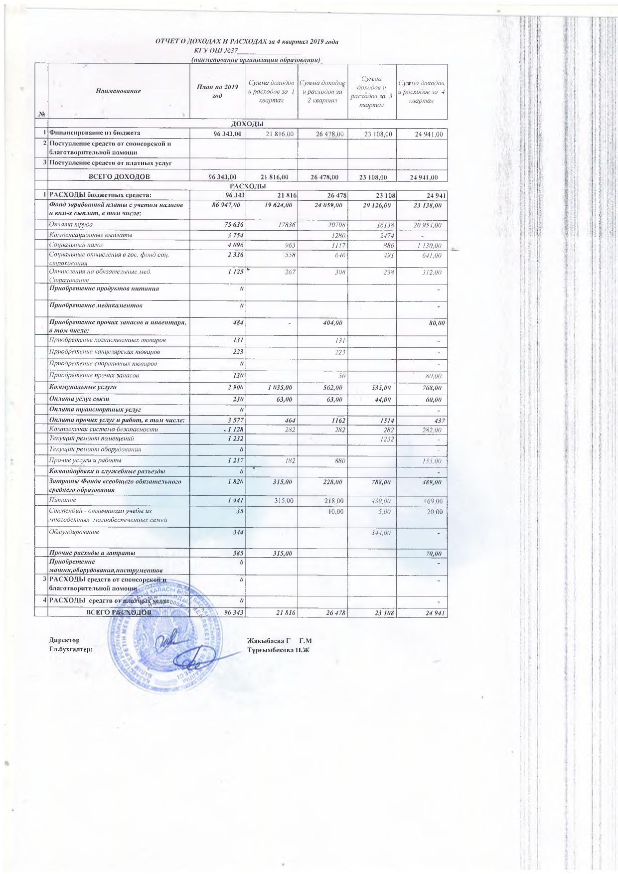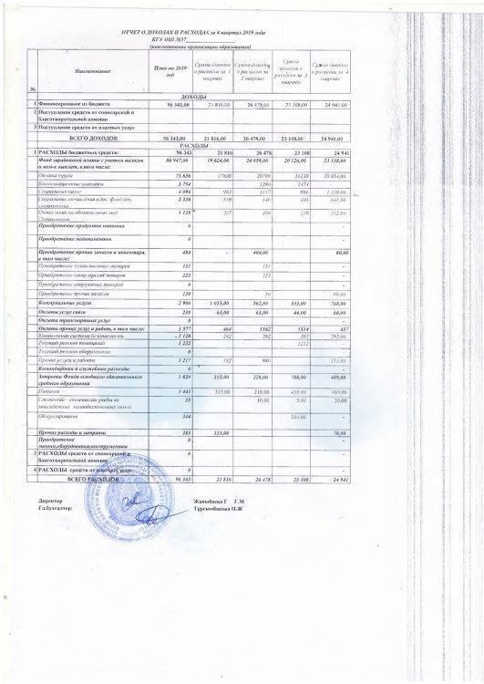 Отчет о доходах и расходах на 4 квартал 2019 год