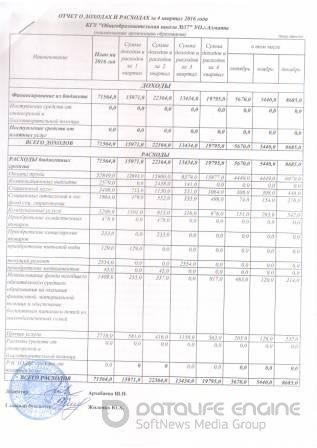 » Отчет о доходах и расходах за 4 квартал 2016г