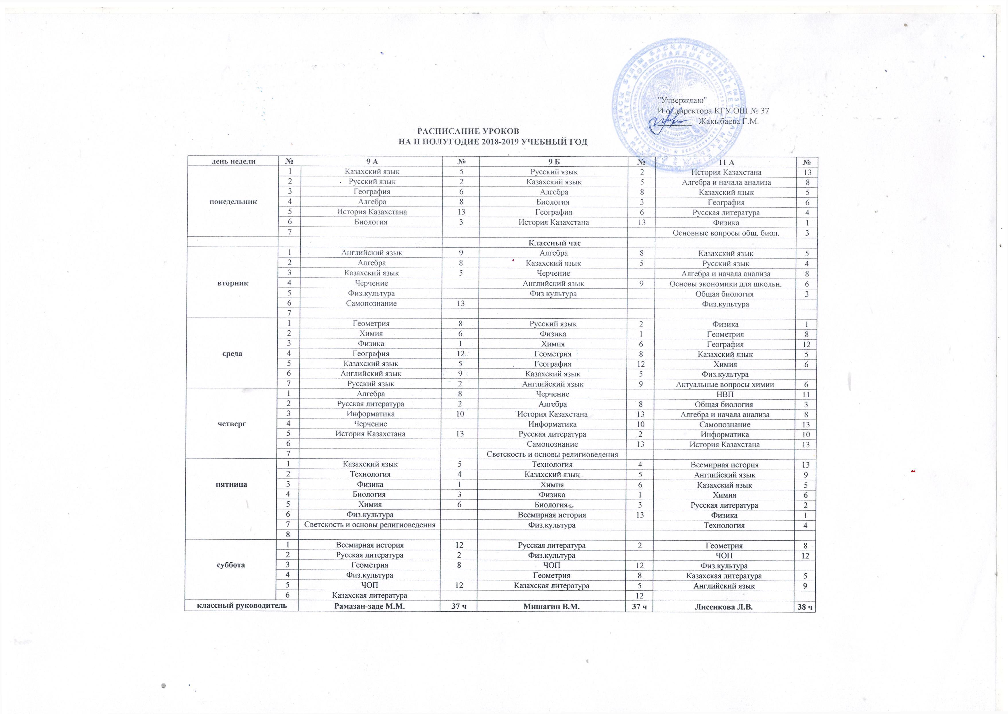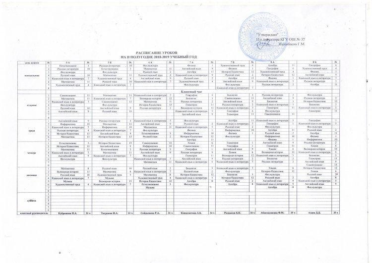 РАСПИСАНИЕ УРОКОВ НА II ПОЛУГОДИЕ 2018-2019 УЧЕБНОГО ГОДА