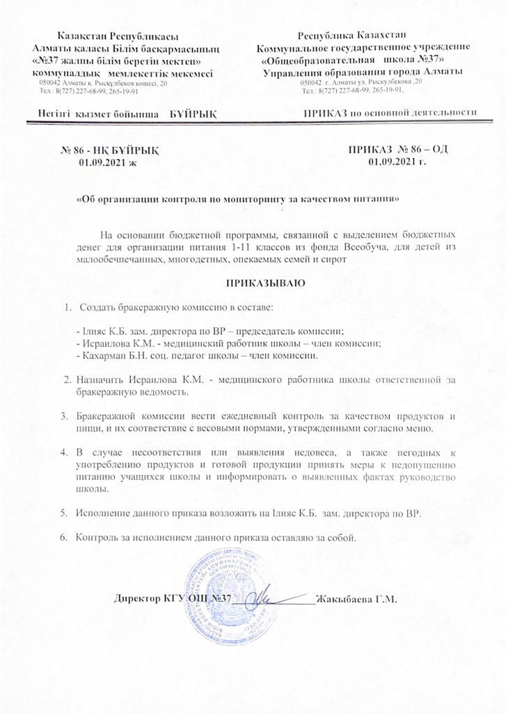 01 қыркүйек 2021 0 1 2 3 4 5 Приказ "Об организации контроля по мониторингу за качеством питания" prikaz_o-sozdanii_brakerazhnoj_komissii.pdf [923,82 Kb] (cкачиваний: 3) Посмотреть онлайн файл: prikaz_o-sozdanii_brakerazhnoj_komissii.pdf