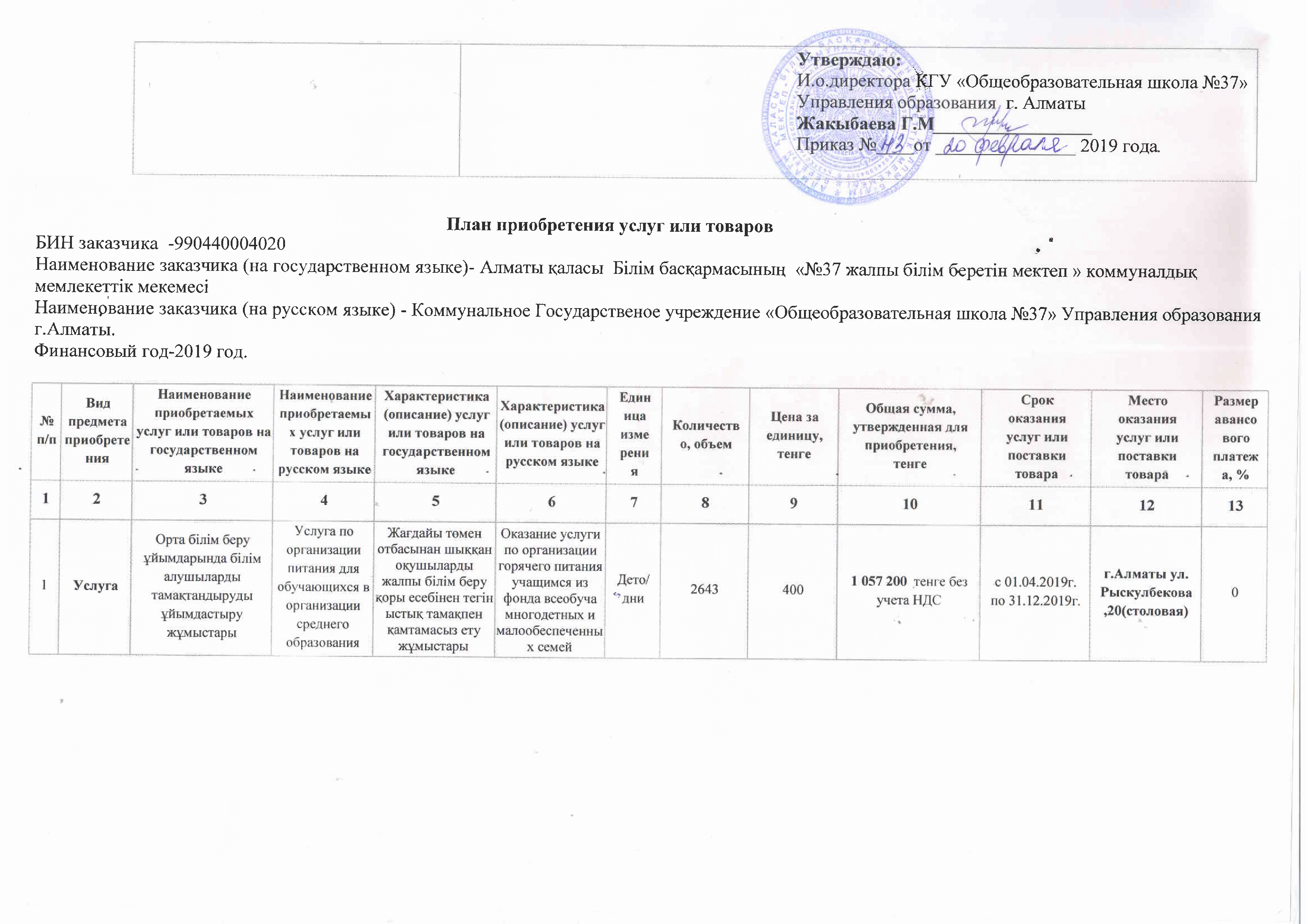 КГУ «Общеобразовательная школа №37 » Управления образования г.Алматы
